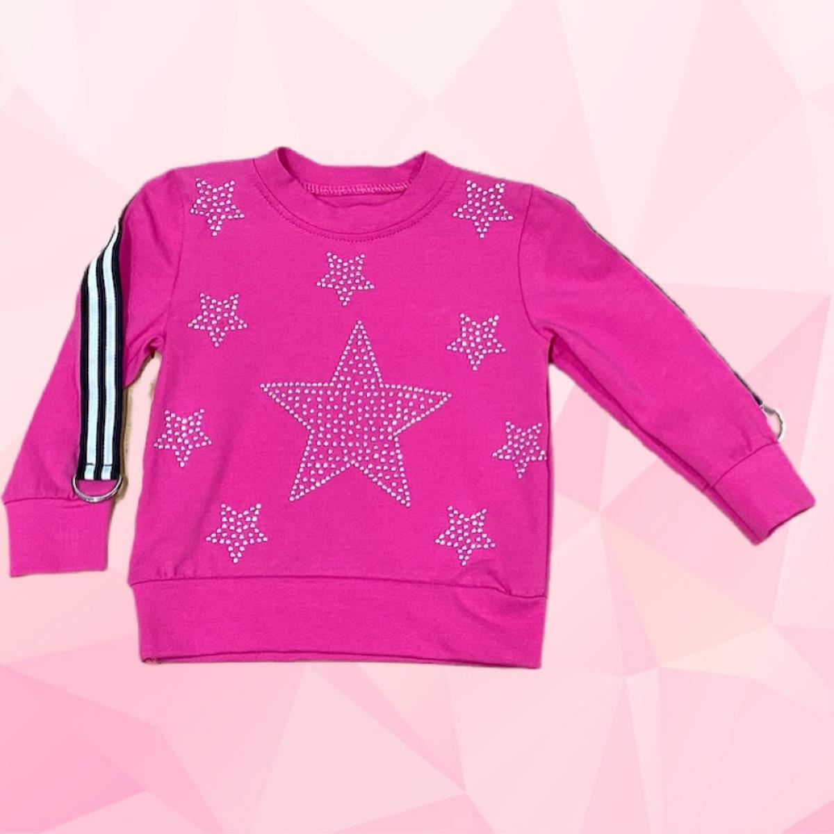 T-shirt girocollo a maniche lunghe, stampe sul frontale con dettagli glitterati;
