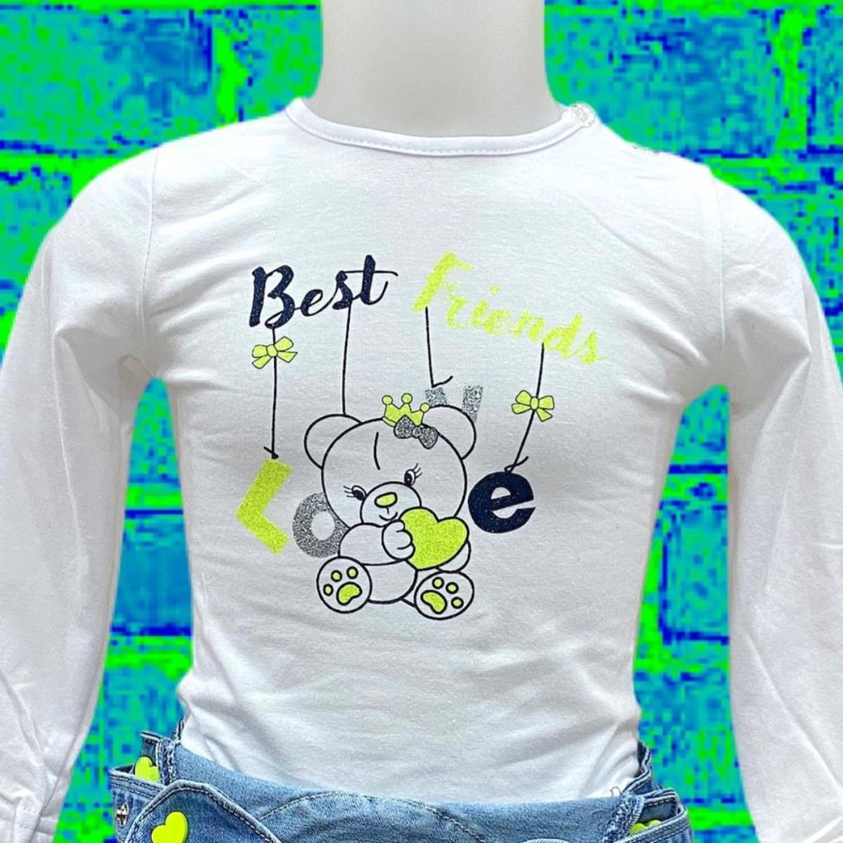T-shirt girocollo a maniche lunghe, stampe sul frontale con dettagli glitterati;