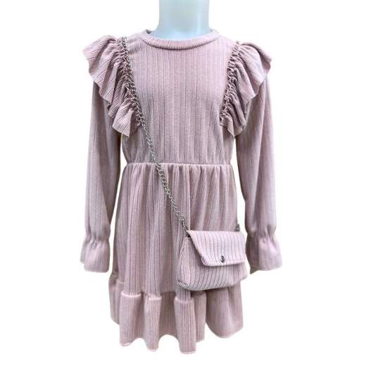 VESTITO GIROCOLLO IN MORBIDA MAGLINA CON VOLANT E BORSETTA 4/14 ANNI