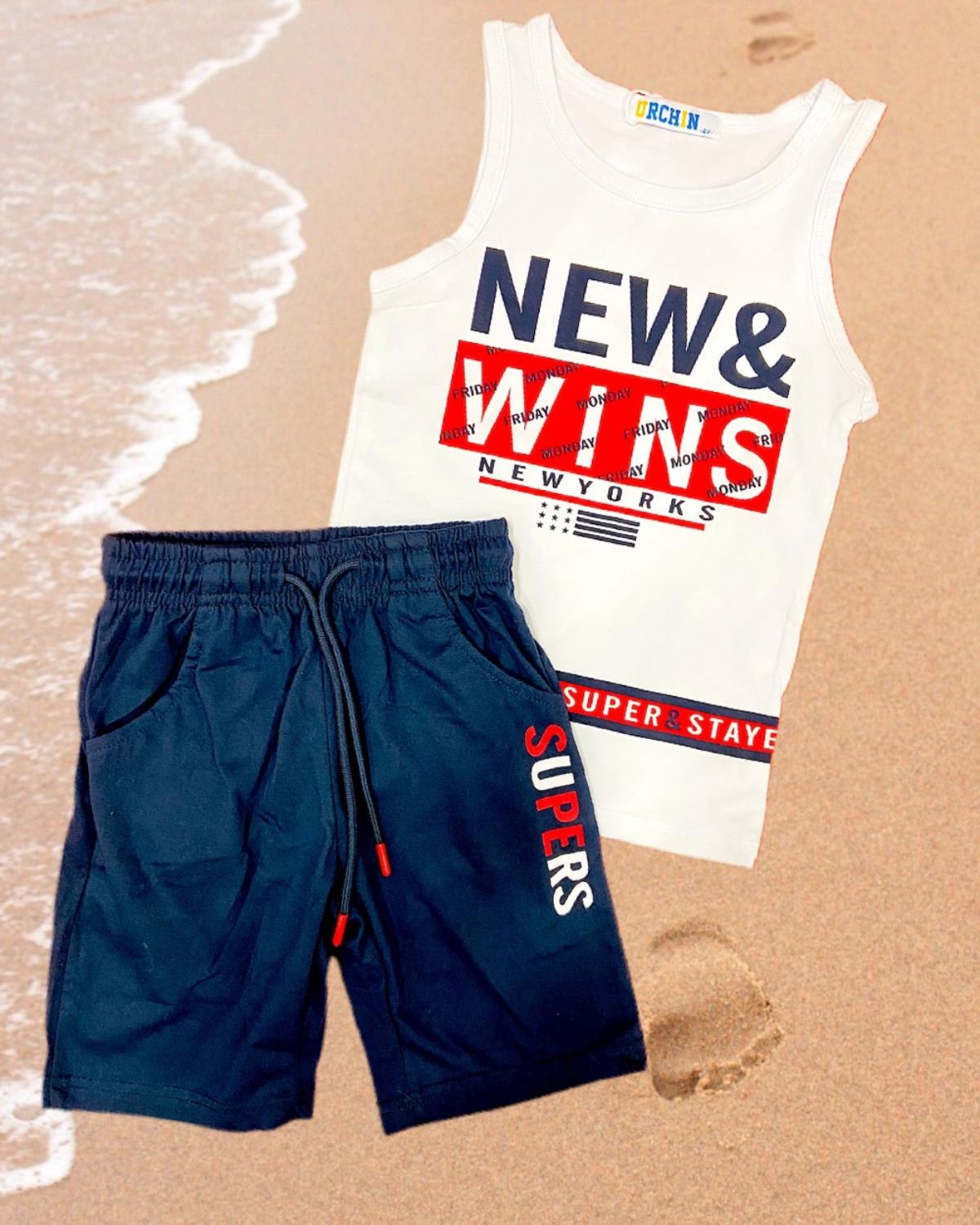 T-SHIRT A MANICHE CORTE CON STAMPA E BERMUDA 4/14 ANNI